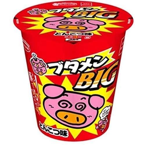 ご覧の通りパッケージには…ミニサイズのカップ麺でお馴染み“ブタメン”の公式キャラクターが同じく掲載されていて、実際にはガツンとした食べ応えを感じさせるタテ型ビッグサイズとなっており、数あるフレーバーの中でも一番人気である“とんこつ味”といった文字が記載されており、そもそもビッグサイズを意味する“BIG”の文字が追加されていることが確認できますね!(これまでも何度か発売されているため、もはやお馴染みの商品とも言えるでしょう。)