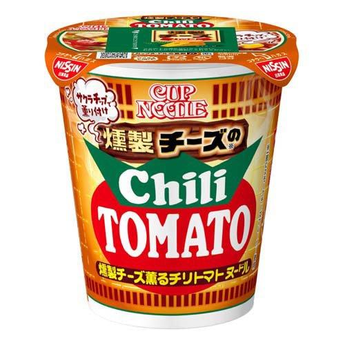 この商品は、下記の通り燻製のクセになる薫りと美味しさが楽しめるメニューを“日清 燻製トリオ”として3品同時発売した中のひとつで、トマトの甘みと酸味を利かせたチリトマトスープにサクラチップで薫り付けした“燻製チーズパウダー”を加えることによってコク深い味わいが際立ち、スモーキーな薫りがたまらない…今回のテーマに相応しい風味豊かな一杯、“カップヌードル 燻製チーズのチリトマト”となっております。(値段:税別236円)
