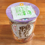 開封してみると、粉末スープなどがすでに入っていて、フタの上には“仕上げの小袋”と記載された調味料が別添されています。