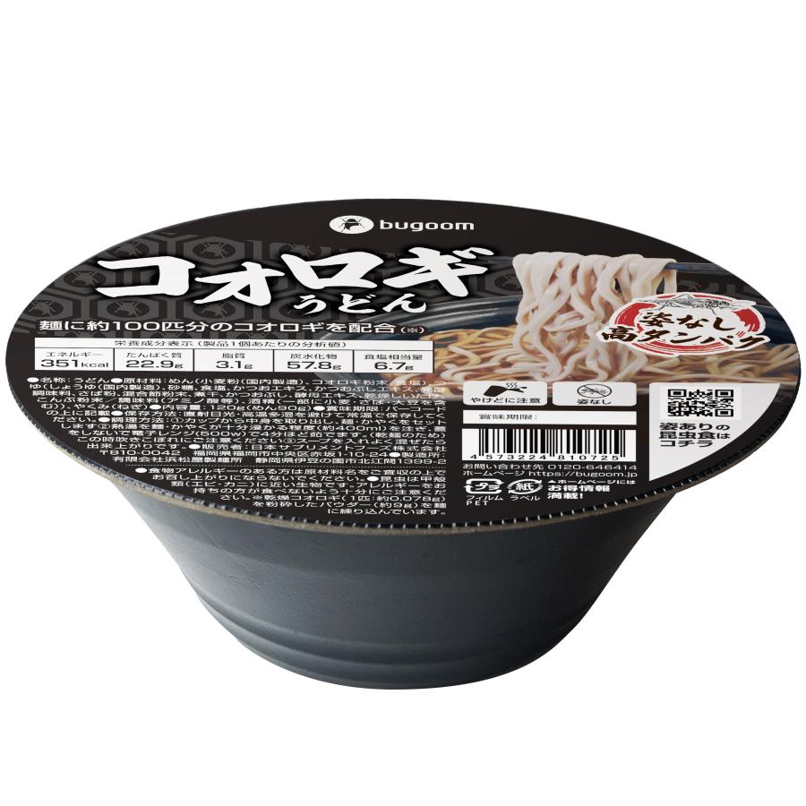 この商品は、“昆虫食が未来を救う”をコンセプトにした通販サイト“bugoom(バグーム)”で販売されているもので、コオロギパウダーを麺に練り込んだ業界初となる昆虫食のカップ麺であり、小麦粉とコオロギパウダーを使用・熟成させたことによって上質な“うどん(コオロギ麺)”に仕上げ、魚介出汁をしっかりと利かせたじんわりと染み渡る“和風つゆ”と絶妙にマッチした拘りの一杯が登場です!