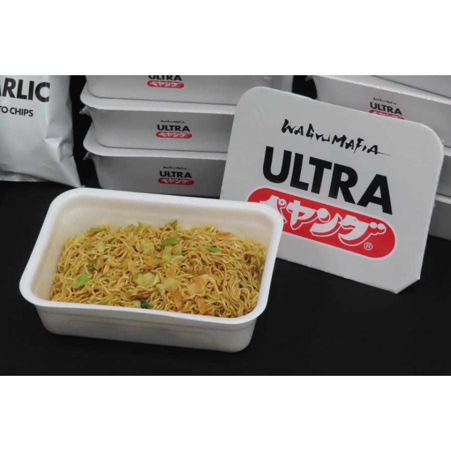 ご覧の通り、パッケージには“WAGYUMAFIA”といった店舗ロゴが記載され、ファミリーマートとのコラボとしては…これまでも“ポテトチップス ULTRA GARLIC”や“ULTRA HIGHBALL”が発売されており、コラボ第3弾となる今回は以前の商品も再発売され、さらに“ULTRA ペヤング”も加わり、大きくカットされたフライドガーリックを約10g使用していますから、恐らくインパクト抜群な美味しさが表現されているものと思われます!
